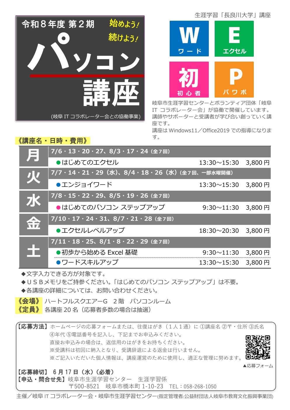 【募集中】令和8年度 第2期パソコン講座(7月~8月)